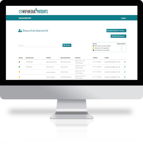 - QR Code mit Termindetails als PDF zum Download oder per E-Mail Versand zum Ein- und Auschecken in der Klinik am Check in & Check out Terminal